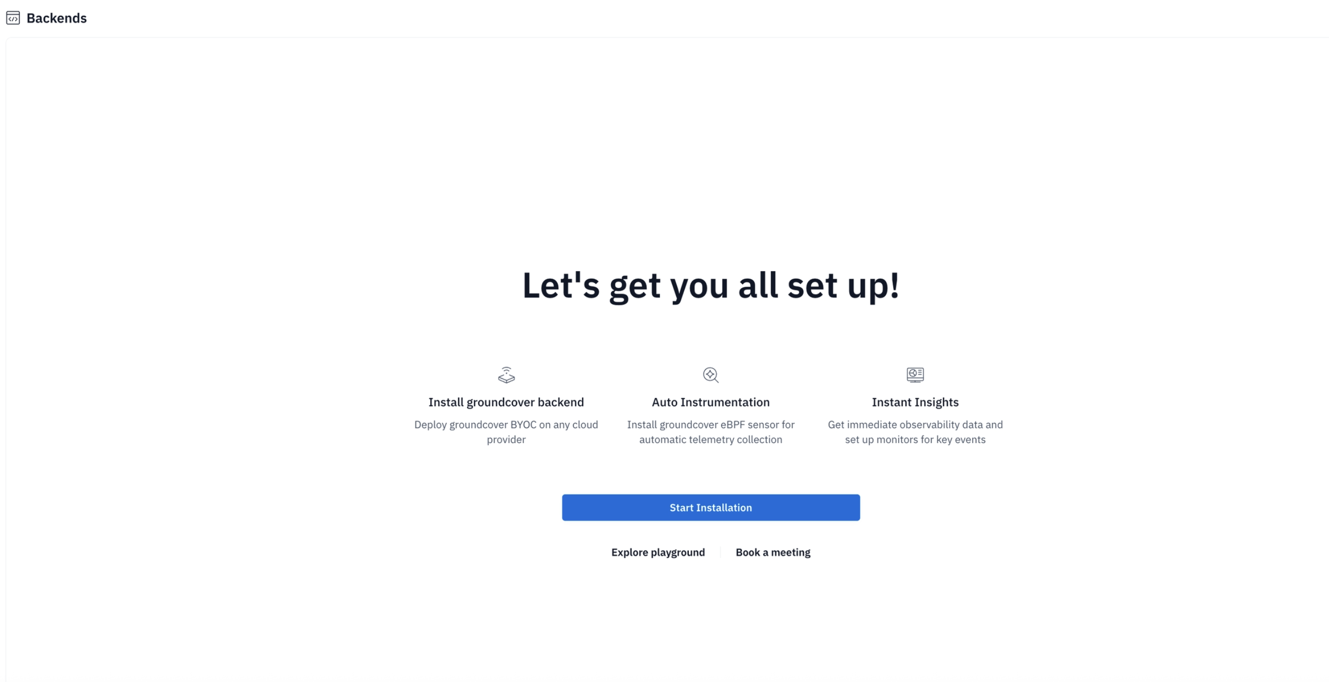 To install groundcover BYOC, sign up to [groundcover Console](https://console.groundcover.com/) and start the installation process.